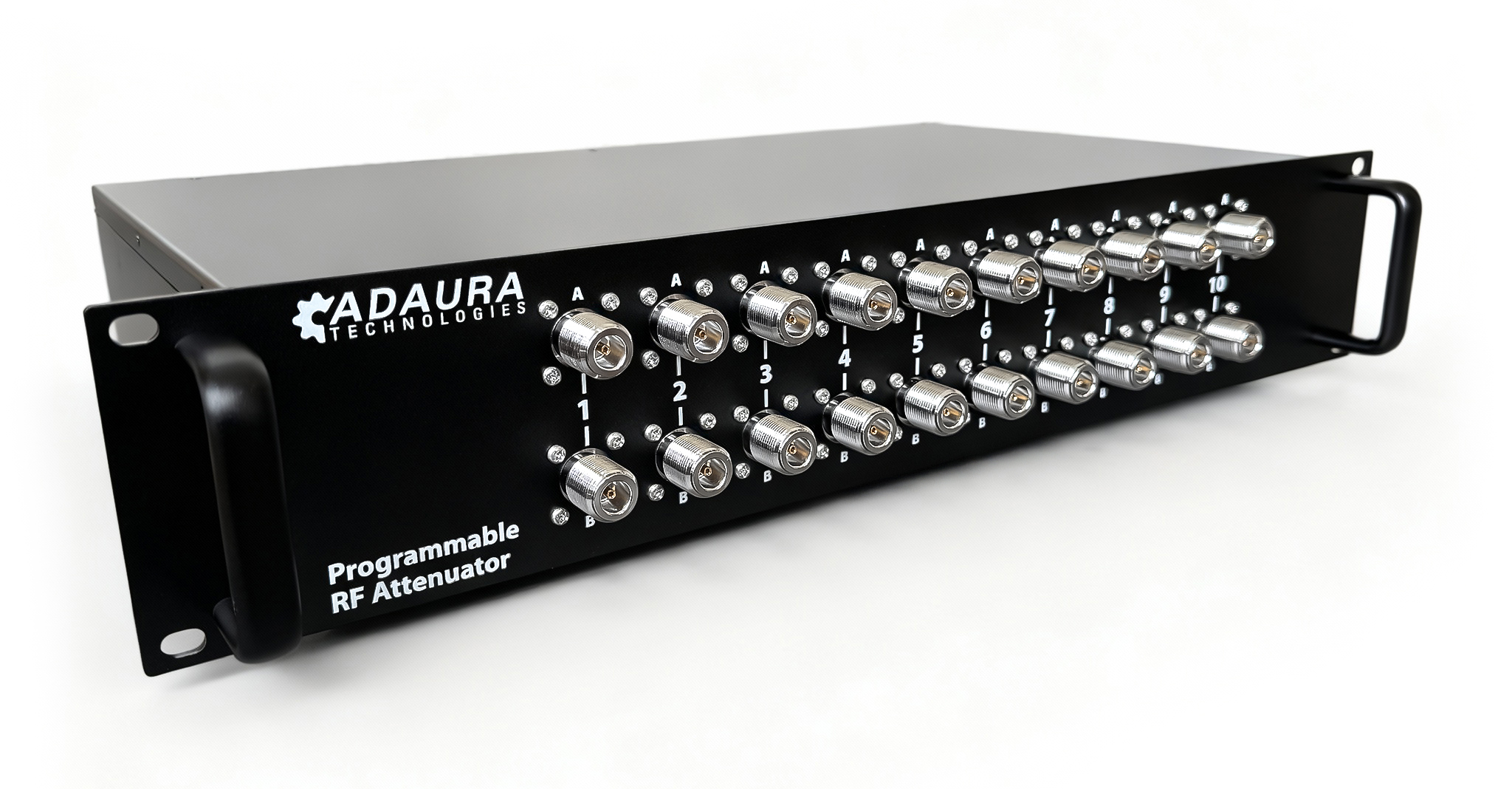 Adaura Technologies offers highly customizable 50 Ohm 19″ rackmount attenuator systems and utilize solid-state attenuators. These systems can be rapidly deployed in test infrastructures due to the versatile AdauraTech software platform.